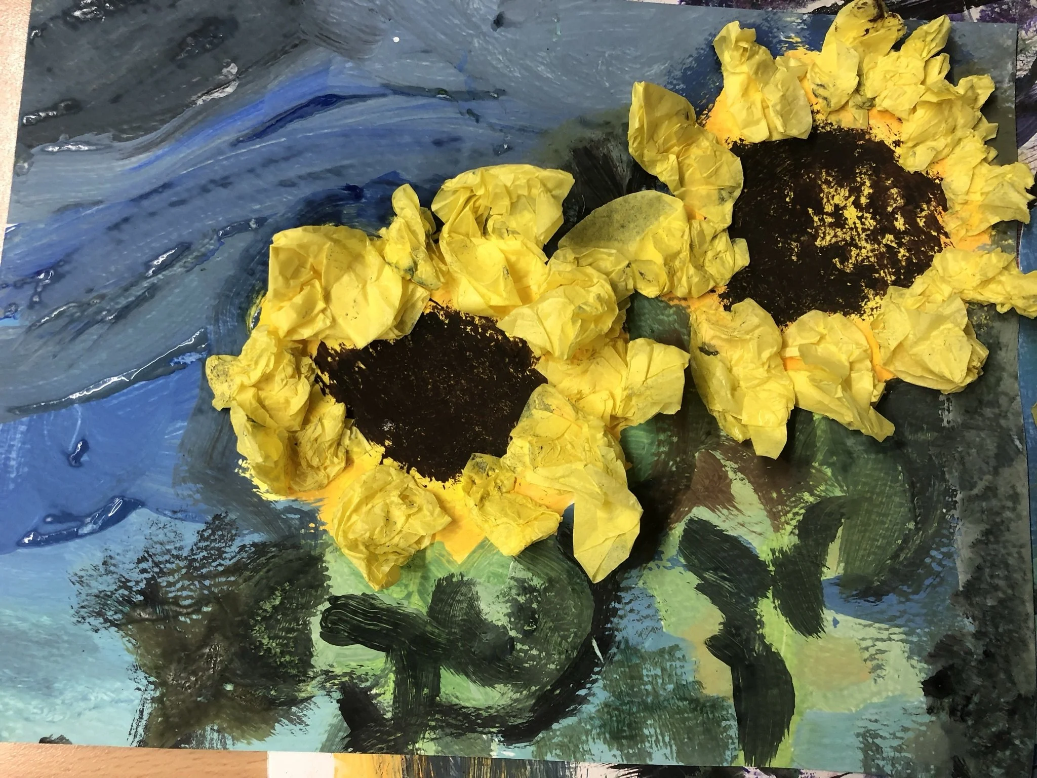 Mixed media Sunflowers: Paint and paper on stretched canvas Mixed media paint and paper sunflowers : Using Emil Nolde’s sunflowers as our inspiration.